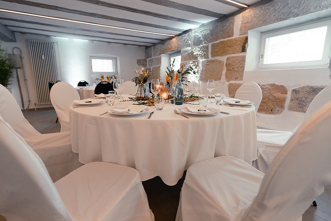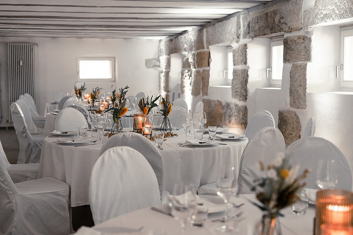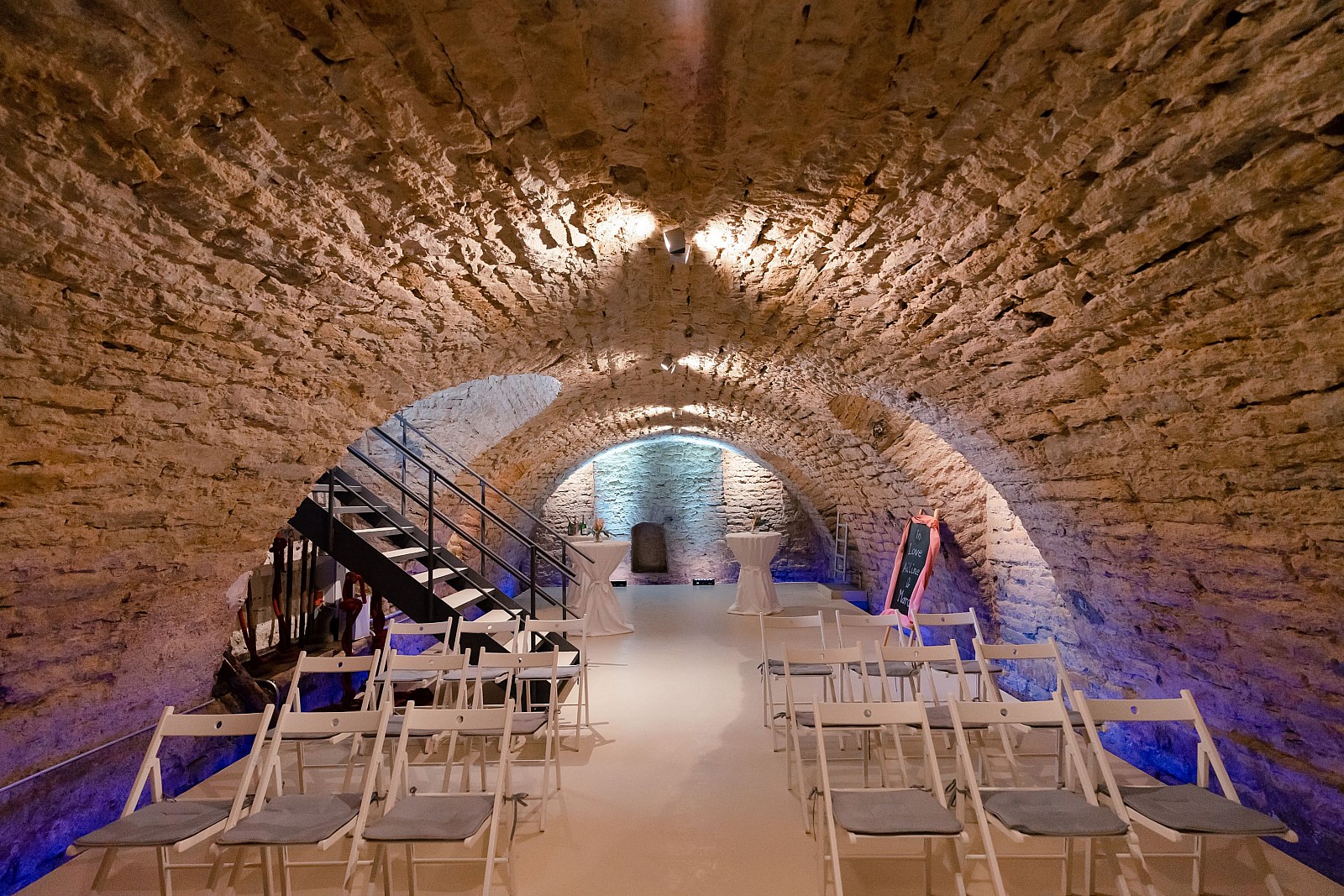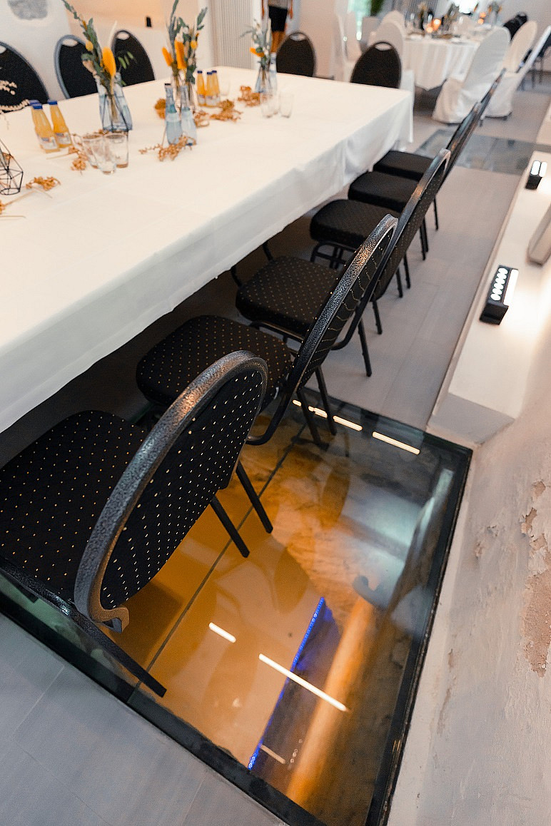 Caterina/Essen findet im oberen Geschoss statt, die Party im Gewölbekeller unten