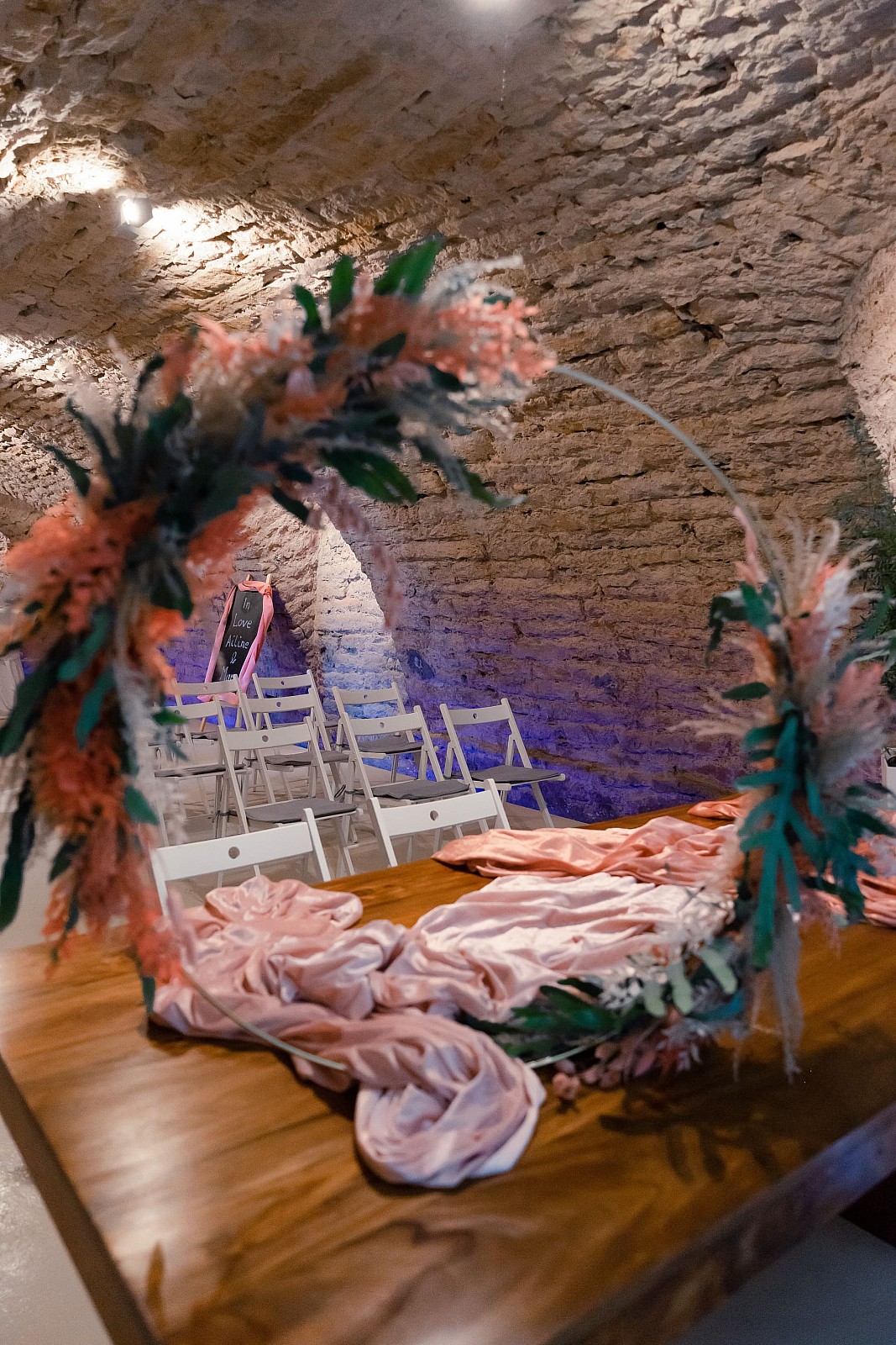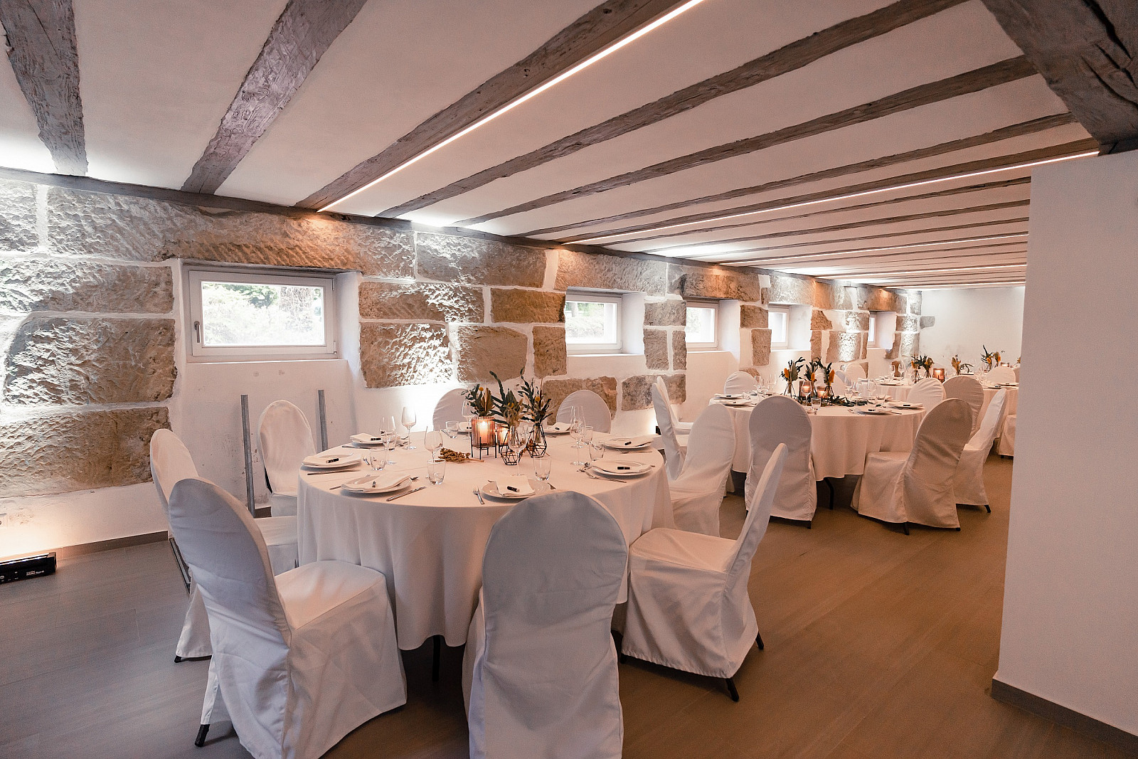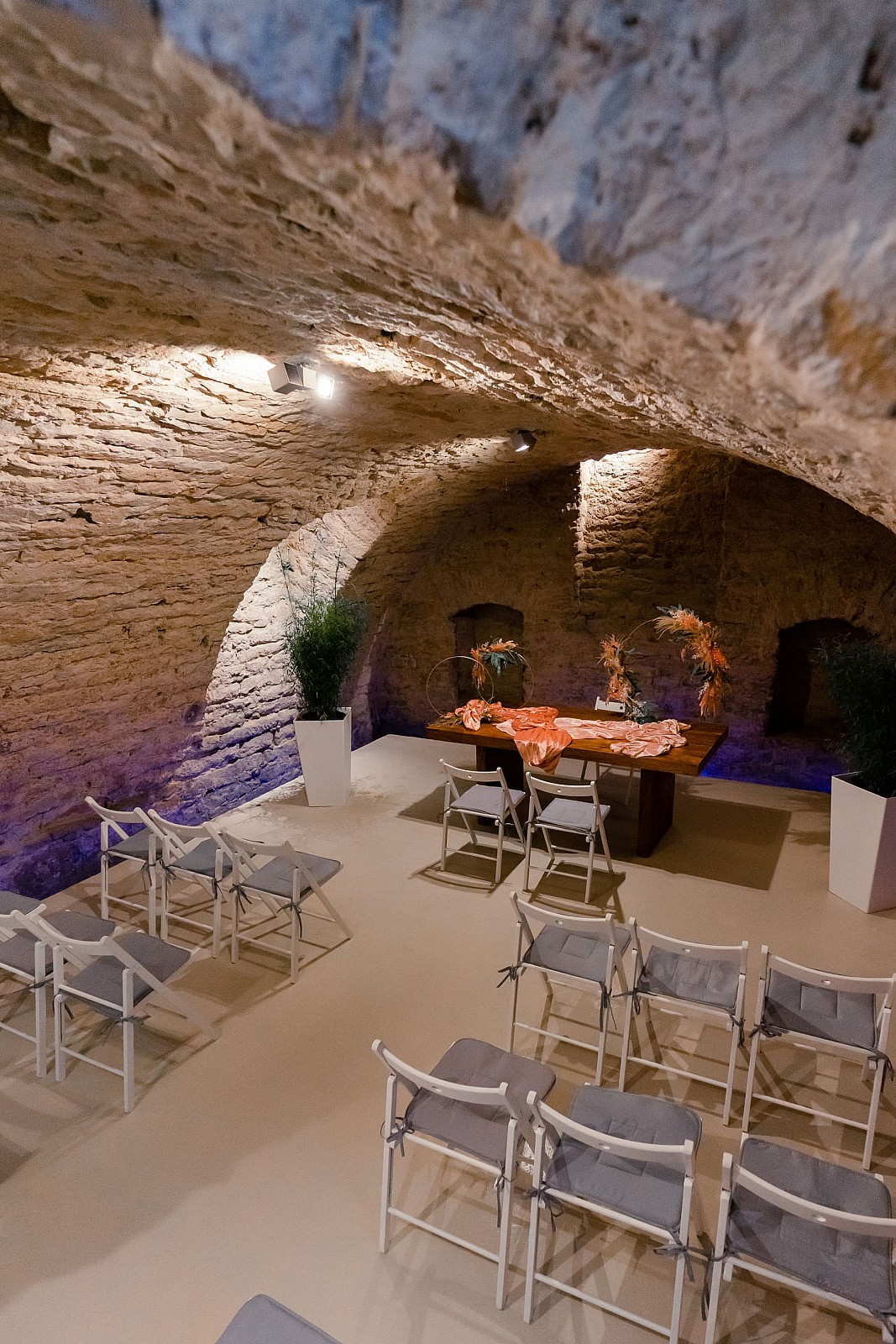 Caterina/Essen findet im oberen Geschoss statt, die Party im Gewölbekeller unten