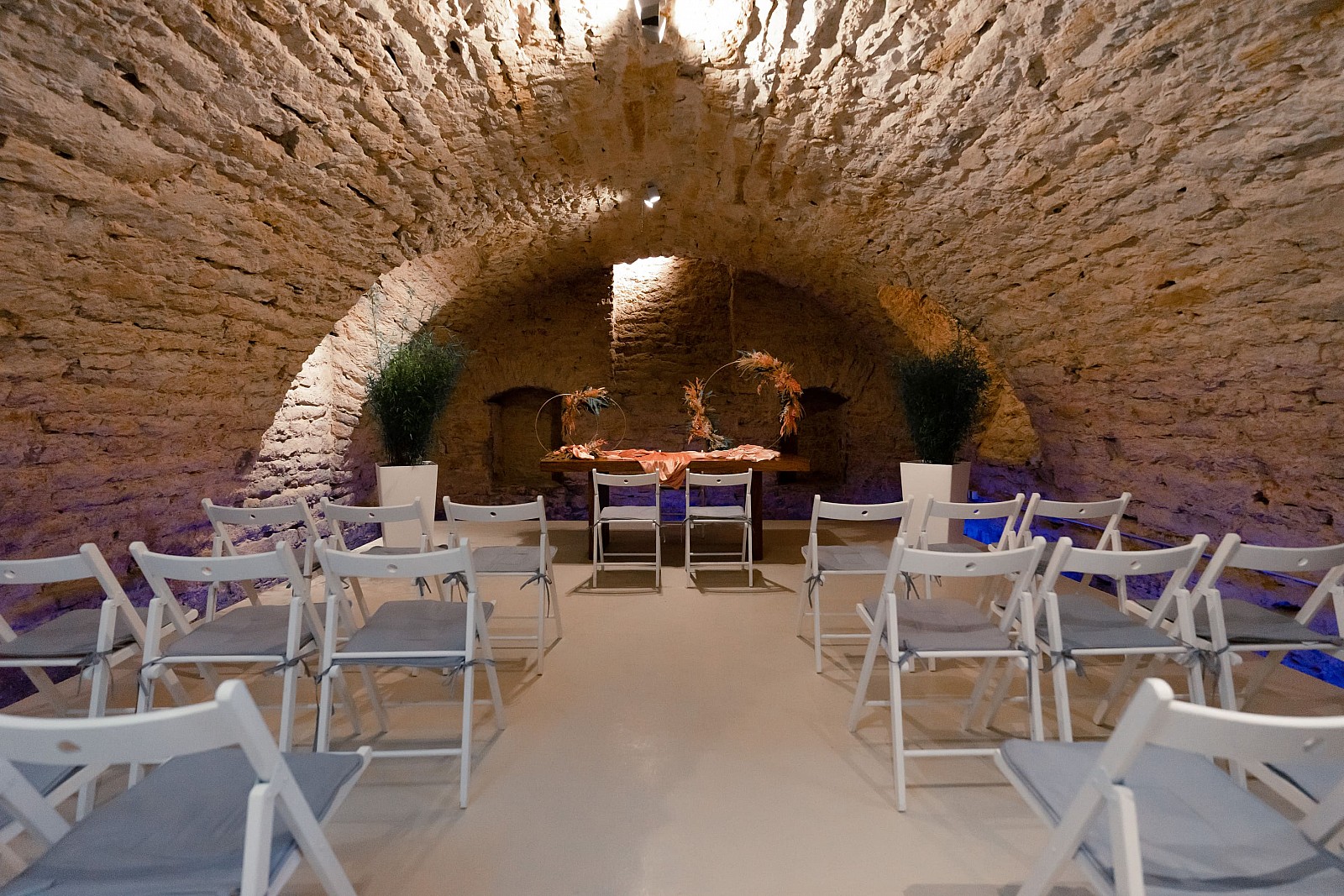 Caterina/Essen findet im oberen Geschoss statt, die Party im Gewölbekeller unten